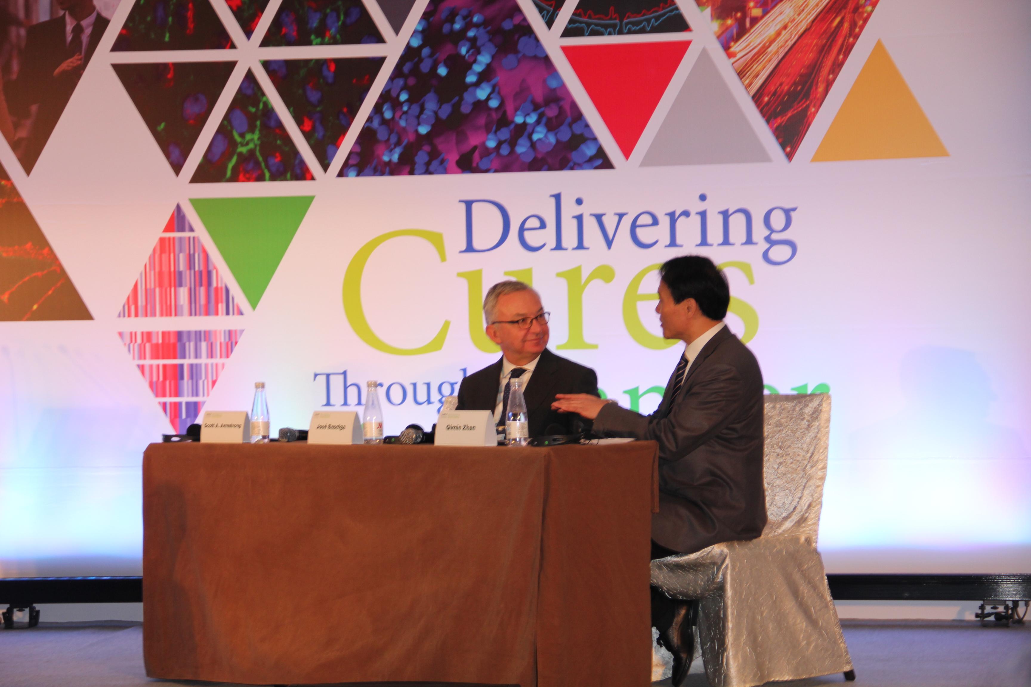 Jose Baselga博士与詹启敏院士正在讨论交流