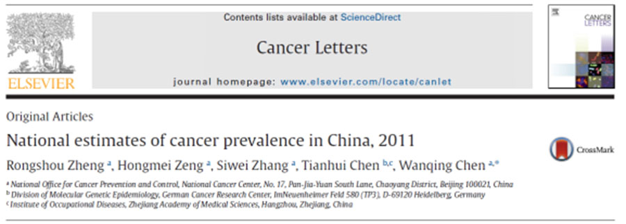 2015年10月5日,国家癌症中心主任陈万青在国际癌症专业期刊《Cancer Letters》上发表了名为《National estimates of cancer prevalence in China, 2011》的文章,首次发布我国居民癌症现患数据。