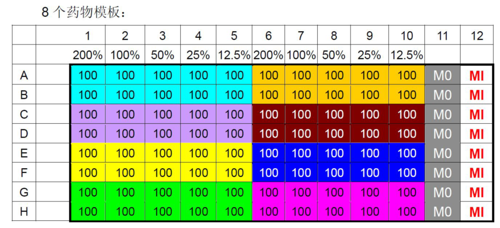 同时评估8组药物、5个血药浓度下对肿瘤细胞的抑制率;